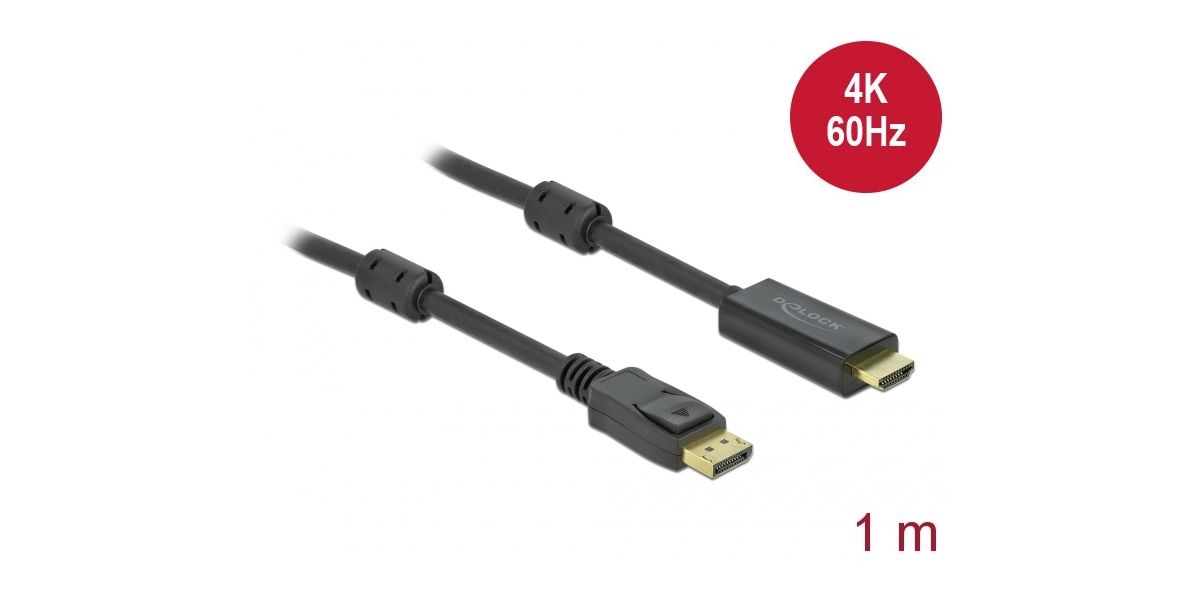 DELOCK DisplayPort 1.2 > HDMI Kabel 4K 60Hz 1,0m aktiv